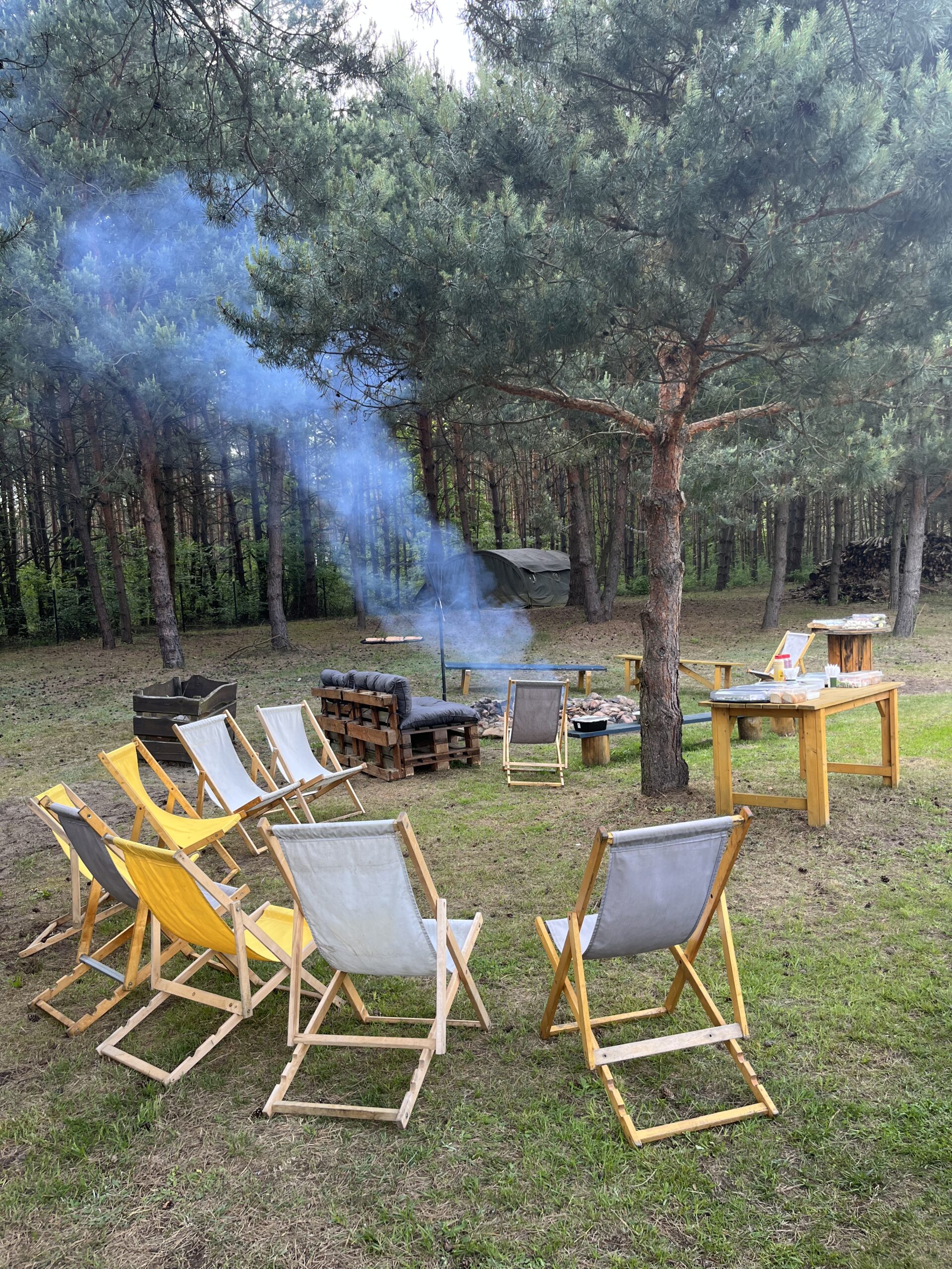 Na terenie obiektu zapewniamy przestrzeń do odpoczynku i wspólnego świętowania. Do dyspozycji gości są ławki i stoliki, a także miejsce na ognisko, które świetnie sprawdzi się po zakończonej zabawie. Dzięki temu urodziny mogą mieć zarówno aktywną, jak i relaksującą część.